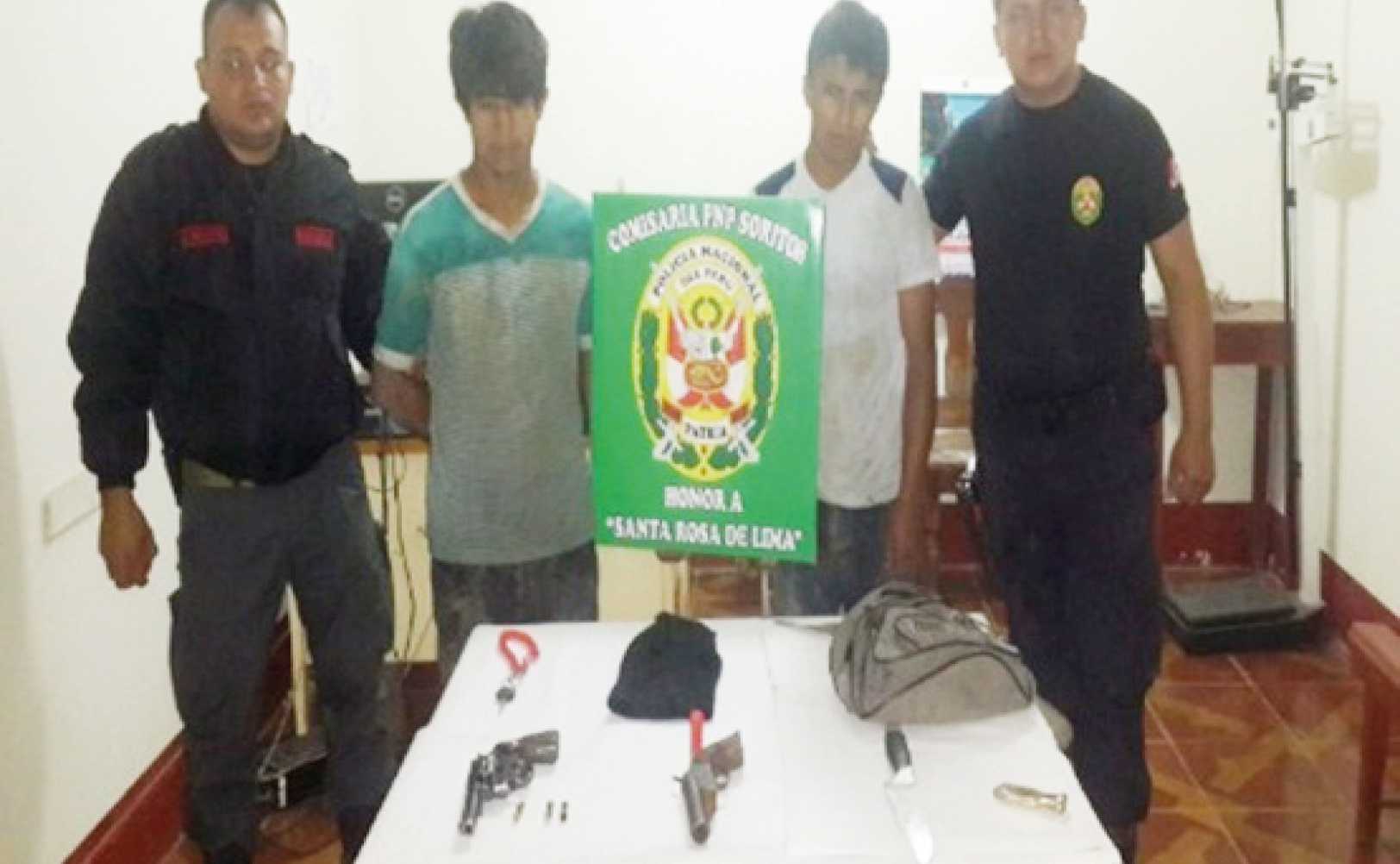 Soritor. El teniente César Dávila Rodríguez y su personal policial, desarticularon la banda delincuencial denominada “Los Carnales de Soritor”, integrada por los sujetos Joel Marin Miranda (21) del caserío Manizales e Ismael Quispe Fernández (25) años de edad, son sindicados de haber asaltado el domingo 18 de enero, aproximadamente a las 3.30 de la tarde a Jhonatan Quispe Mondragón de 20 años de edad, en el sector el Chorro. Quispe, se dirigía al río Indoche, en una motocicleta marca Yamaha modelo F Z -1500, con placa S4-1846 llevaba una tarrafa, en esas circunstancias fue asaltado y se llevaron su vehículo menor, dejándolo amarrado las manos y pies con la misma tarrafa y lo taparon con plástico.