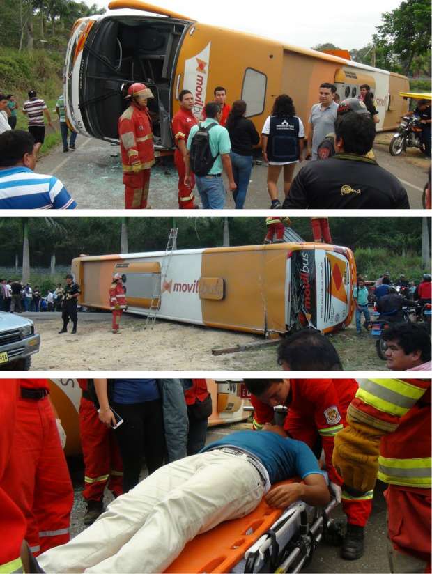 Ayer por la mañana un ómnibus de la empresa de transportes Móvilbus que se dirigía a Lima se despistó en la carretera Fernando Belaúnde Terry, en el distrito de Morales, dejando cinco pasajeros, dos tripulantes heridos y un fallecido. Los pasajeros y algunos mototaxistas con los que iba a impactar el vehículo coincidieron en señalar que el exceso de velocidad fue la causa del siniestro.