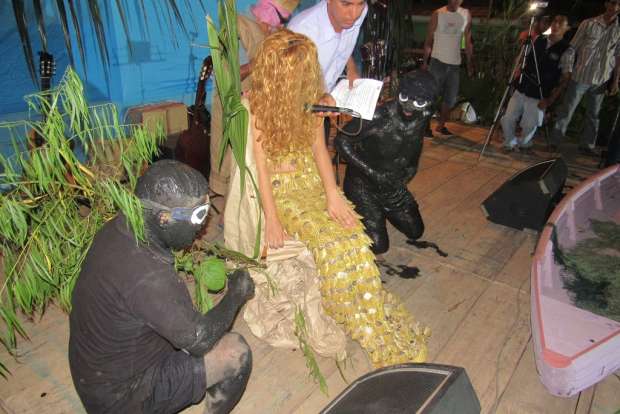 Por el Día de la Laguna Azul de Sauce, que se celebrá cada 8 de abril en el turístico distrito de Sauce desde el 2007, se realizó la escenificación cuando pescadores atrapan a la sirena que habita en esas aguas.