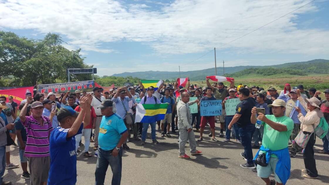 Los protestantes, improvisando carpas, se ubicaron en el lugar solicitando una postura del gobernador Walter Grundel Jiménez, para que emita su pronunciamiento y se manifieste respecto a lo que está ocurriendo. Los pobladores llegaron a bloquear la carretera por un tiempo. Hecho que motivó la intervención de la policía. Al final las cosas no llegaron a mayores y todo se normalizó, la protesta continúa pacíficamente.