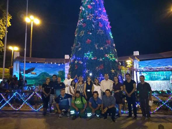 Moyobamba. Con luces multicolores y juegos pirotécnicos se inauguró el árbol gigante de Navidad y el nacimiento en la plaza de Armas confeccionado por la Municipalidad de Moyobamba, el acto de encendido contó con la presencia del alcalde Oswaldo Jiménez Salas, las regidoras, Norma Rojas Pizarro, Nancy Ramos y Martha Garate. La autoridad edil destacó el trabajo del personal que se esforzó en los últimos días para acelerar los trabajos, de tal forma que pueda estar listo y que la población pueda apreciar y disfrutar del ambiente navideño. El nacimiento cuenta con aspectos tradicionales y pinturas que plasman atractivos turísticos del Alto Mayo como el Morro de Calzada, Puerto de Tahuishco, baños termales y otros lugares; el encendido de las luces del árbol gigante y el nacimiento estuvo a cargo del burgomaestre en medio de la presencia de un importante número de asistentes. En tanto Marden Navarro, en su calidad de subgerente de Promoción Turística de la municipalidad dijo que el presupuesto invertido en todos los trabajos bordea los 17 mil soles, ya que se usaron materiales que sobraron del año pasado. En cuanto al diseño se hicieron algunas modificaciones a raíz de las críticas que se tuvo en años anteriores. (Franclin Laván)