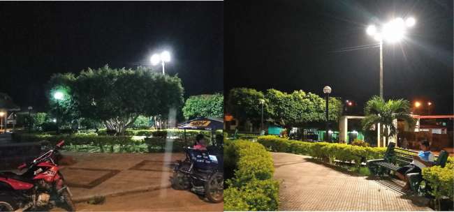 La iluminación tipo LED instalada en la plaza San Juan es integral tanto al interior como en sus alrededores, similar a la iluminación de la plaza de Armas de Tarapoto y de los distritos de Morales y La Banda del Shilcayo. Por ello luce un “nuevo rostro”, no solo por la nueva iluminación, sino, por las labores complementarias de mantenimiento y limpieza general a cargo de la Municipalidad del distrito.