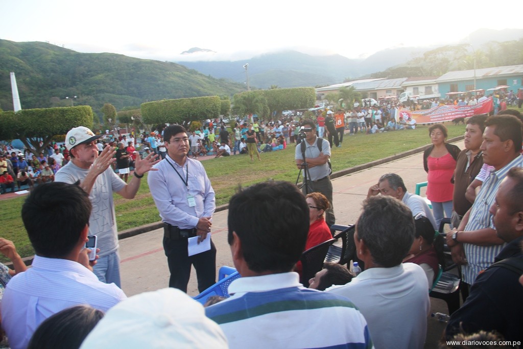 Tal como estaba previsto, ayer por la tarde durante una asamblea pública realizada en la plaza de Armas del distrito de Agua Blanca, los funcionarios del Proyecto Especial Huallaga Central y Bajo Mayo (PEHCBM) sostuvieron una reunión con las autoridades y representantes de las organizaciones de base, a fin de tratar la problemática referente al tramo San Pablo – San José de Sisa y específicamente sobre la obra llamada bicapa y no asfalto.