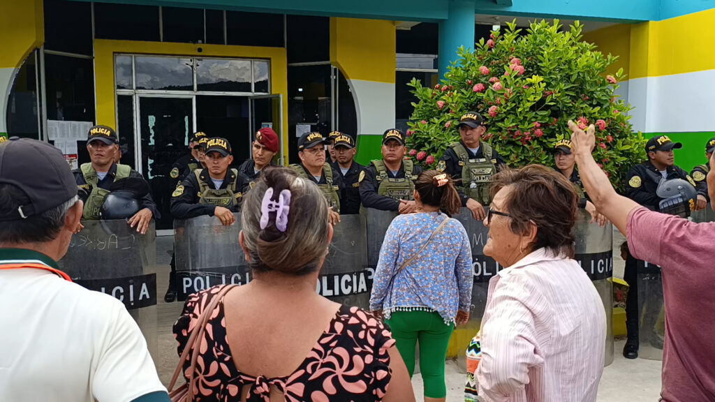 Desde las primeras horas de la madrugada, decenas de pobladores se concentraron en los exteriores del palacio municipal con la intención de bloquear el acceso a los trabajadores. Sin embargo, al lugar llegó un fuerte contingente policial que procedió a despejar la zona y obligó a los manifestantes a retroceder, permitiendo así que el personal municipal ingrese a sus labores aproximadamente a las 7:30 de la mañana.