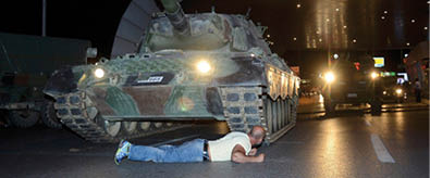 El Gobierno lanzó la ofensiva contra los sublevados y pidió ayuda de los ciudadanos, a los que animó a “saltar sobre los tanques”. La imagen de un hombre encarando a los tanques que avanzaban se hizo tremendamente popular en redes sociales. Las mezquitas llamaron también a los fieles a resistir el golpe. El centro nacional de inteligencia, cuando miles de personas salieron a las calles, dijo que el golpe había fracasado.