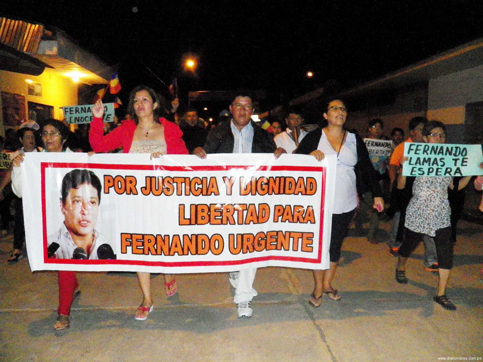 El fin de semana por la noche, decenas de personas marcharon por las calles de Lamas, con la finalidad de mostrar su respaldo a Fernando del Castillo Tang, alcalde de esa provincia, quien se encuentra recluido en el penal Las Pampas de Sananguillo de La Banda de Shilcayo, sindicado por los presuntos delitos de negociación incompatible y tráfico de influencias.