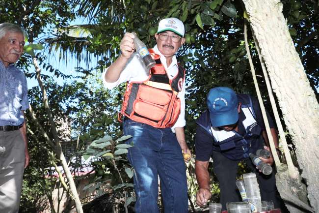Las indicadas autoridades, desde muy temprano participaron en forma personal en esta campaña, acompañando a los brigadistas en las visitas domiciliarias, para el recojo de los criaderos.