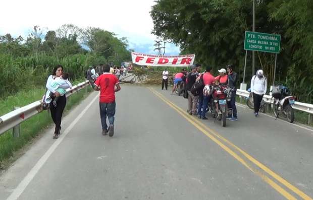 Los manifestantes están concentrados en dos piquetes, a la altura del puente Tónchima y salida a la ciudad de Nueva Cajamarca, donde haciendo uso de palos y piedras han obstruido por completo el paso de vehículos, generando que decenas de transportistas en ambos sentidos de la vía nacional se encuentren varados.
