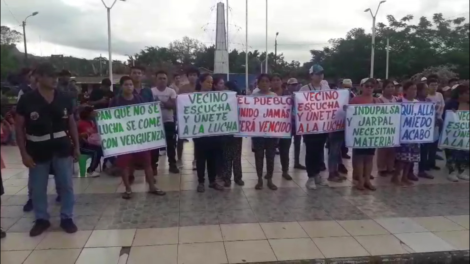 Tapullima Yalta expresó que están cansados de esperar promesas vacías. “Tenemos un convenio firmado, pero nos dejan de lado. Queremos vender el material agregado de la cantera para financiar proyectos urgentes, pero ni eso nos permiten”, declaró el dirigente frente a la municipalidad, donde los pobladores mostraban pancartas con sus exigencias.