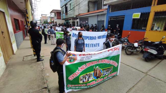 Finalmente marcharon hacia a oficina de la Gerencia Bajo Mayo del Gobierno Regional de San Martín, donde solo ingresaron los dirigentes, que, al salir de la reunión, mostraron su malestar, indicando que les dieron la misma versión que este año si o si se ejecuta la obra, pero no les mostraron documentos del avance de las gestiones, es por ello que realizarán una asamblea en su distrito para evaluar acciones a tomar en una próxima medida de fuerza. En todo momento fueron custodiados por agentes de la Policía Nacional y no se registró ningún incidente. (Karina Roncal)