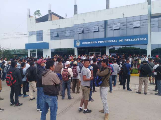 Los moradores del centro poblado Fausa Lamista, desde la noche miércoles pernotaron en los exteriores de la Municipalidad Provincial de Bellavista, exigiendo que las autoridades municipales atiendan sus reclamos, para que vean la forma de mejorar la obra de saneamiento básico que no está en funcionamiento, a pesar de ser inaugurada hace menos de un año durante gestión anterior.