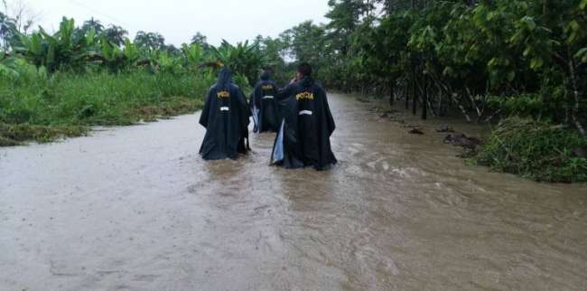 Efectivos policiales llegaron al caserío Chontayaquillo, con la finalidad de apoyar a los moradores, en razón de que habrían sufrido la inundación de sus viviendas por el desborde del río Chontayaquillo, debido a la lluvia que viene azotando en la región San Martín.