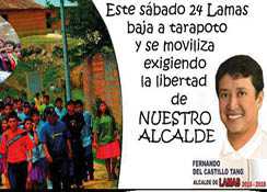 Tal y como se ha venido promocionando a través de convocatorias y por las redes sociales los dirigentes y militantes del movimiento político Fuerza Comunal, así como pobladores de la provincia de Lamas, han confirmado hoy sábado el día para la marcha pacífica hasta la sede del Poder Judicial y el Ministerio Público a fin de exigir la celeridad del proceso y la libertad del electo alcalde, Fernando Del Castillo Tang, preso en el penal de Sananguillo.