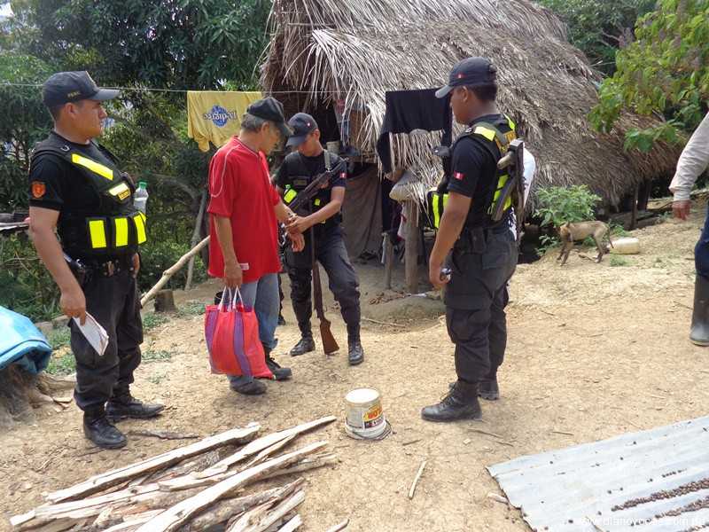 Miembros de la policía de medio ambiente y guarda parques, lograron la detención de un sujeto de nombre Grimaldo Vásquez Macedo y su peón de nombre Edward Daniel Quinteros Durand, los mismos que fueron identificados como cazadores ilegales en la cordillera escalera, en cuyo poder se les encontró animales silvestres muertos y huesos de los mismos.