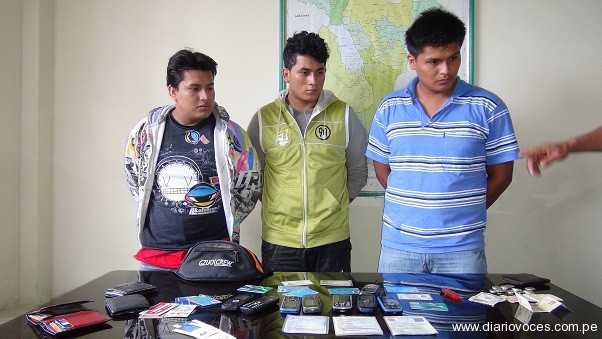Los intervenidos fueron identificados como Olger Ayala Oblitas, Axel Tovarubio Amasifuen, ambos de 21 años de edad e Isaías Pisco Murrieta, de 23 años, quienes negaron haber asaltado a sus pasajeros, pero justificaron los objetos que fueron encontrados en sus vehículos.