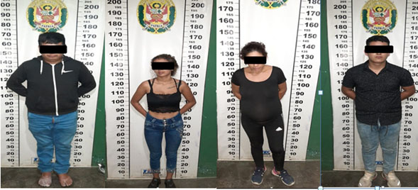 Con la información proporcionada, serenos y policías intensificaron la búsqueda de los facinerosos, siendo ubicados en el Terminal terrestre de la Urbanización La Molina cuando se disponían a viajar llevándose la mercadería que estaban en bolsas de polietileno, los presuntos delincuentes al ser interrogados no supieron explicar la procedencia de la mercadería y tras ser reconocidas las prendas por su propietario Elseres Geny Huantagari Fernández se procedió a su detención y traslado a la dependencia policial donde fueron identificados como Miguel Ángel Farro Carrasco (18), Edwin Huberth Hoyos Figueroa (20), Estefany Andrea Castillo Chávez (19) y Jenny Chávez Chilcón (35). (Franclin Laván)