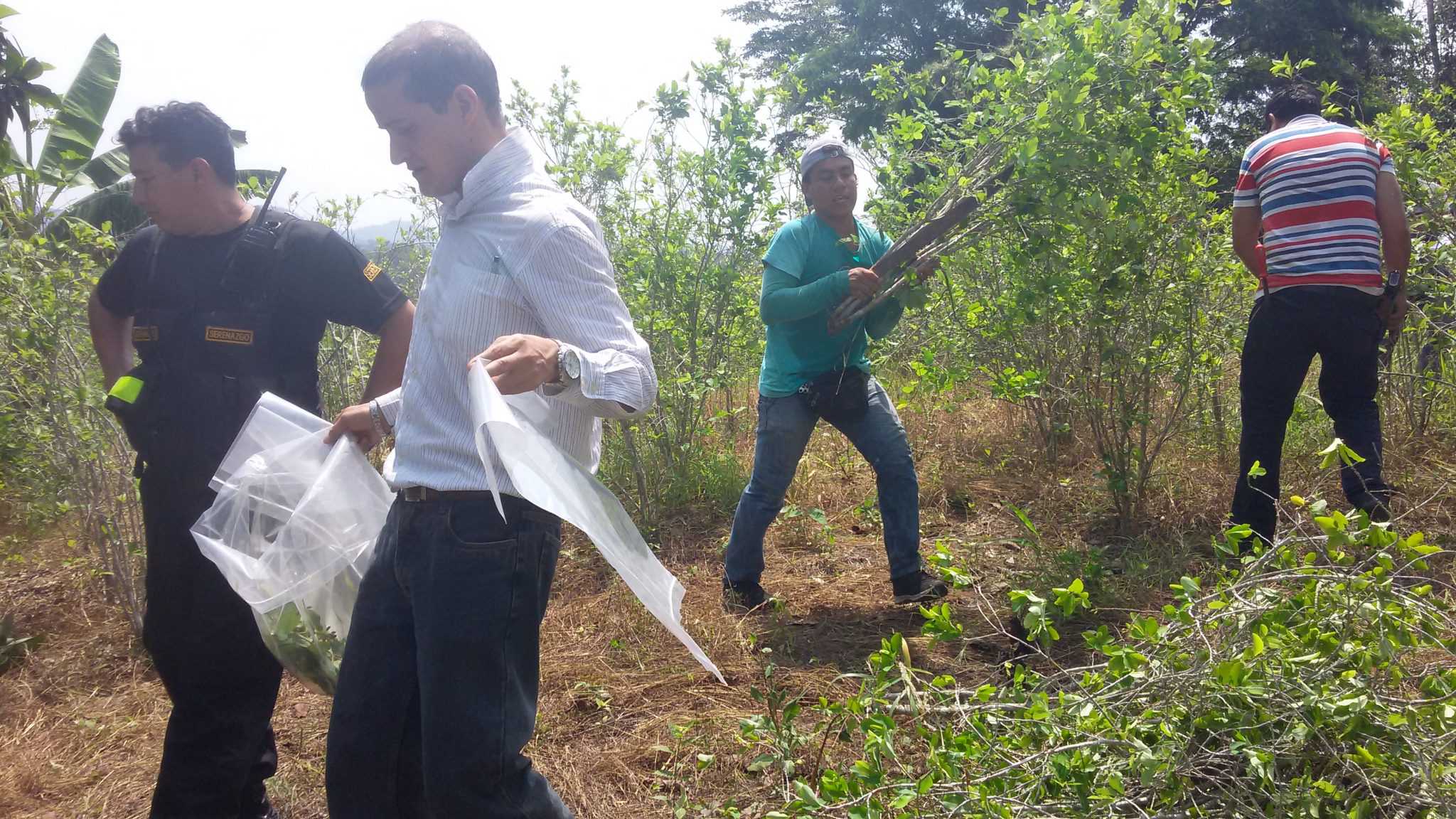 El operativo se realizó por acciones de inteligencia que decía que había sembríos de hoja de coca camuflados en platanales, y se realizó un operativo conjunto policial.