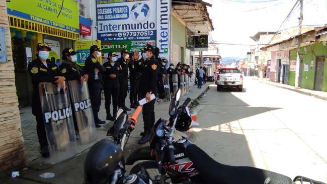 Un contingente policial desde ayer viene resguardando la sede de la Oficina Desconcentrada de Procesos Electorales (ODPE) de la provincia de San Martín, que se encuentra ubicada en el centro de Tarapoto. El tránsito vehicular se encuentra restringido en la zona y los miembros de las fuerzas del orden tienen órdenes de permanecer en ese lugar hasta que culmine el escrutinio.