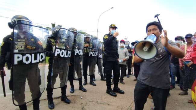 Cuando los manifestantes bloquearon la carretera Fernando Belaúnde Terry, frente a la entrada hacia la localidad de Bello Horizonte, la Policía Nacional lo desbloqueó a la fuerza, luego de ello intentaron tomar la vía cerca del Óvalo del Periodista en La Banda de Shilcayo, de igual manera los miembros de las fuerzas actuaron inmediatamente y se restableció el tránsito vehicular.