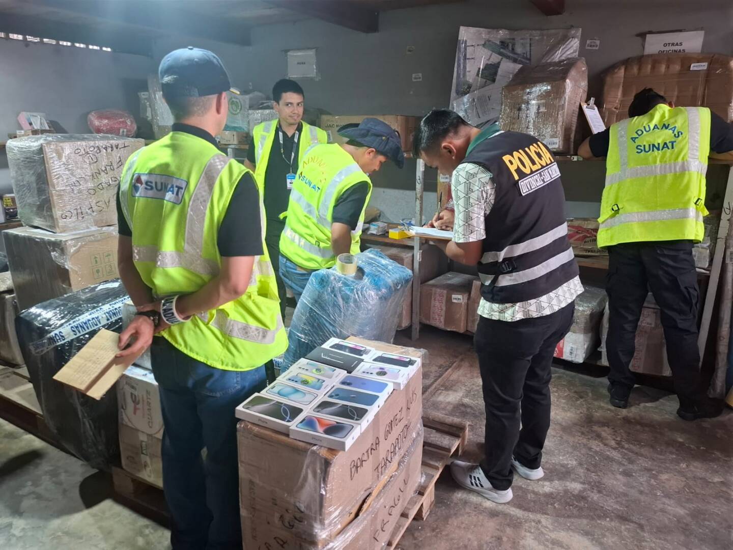 En un operativo conjunto, personal de la Policía Fiscal y Aduanas intervino el almacén de la empresa de transportes Móvil Bus, ubicado en la avenida Salaverry, en el distrito de Morales. Durante la inspección, se incautaron 12 equipos de telefonía móvil de alta gama, valorizados en aproximadamente 50,000 soles.