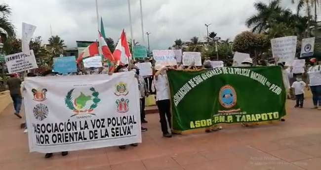 Los policías en retiro junto a sus familiares llegaron a la plaza Mayor de la ciudad portando banderas y pancartas señalando “Terrorismo Nunca Más”, también decían “En Memoria de Nuestros Héroes”. Al finalizar la movilización hicieron un minuto de silencio en memoria de los policías caídos en acción de armas por pacificar el país.
