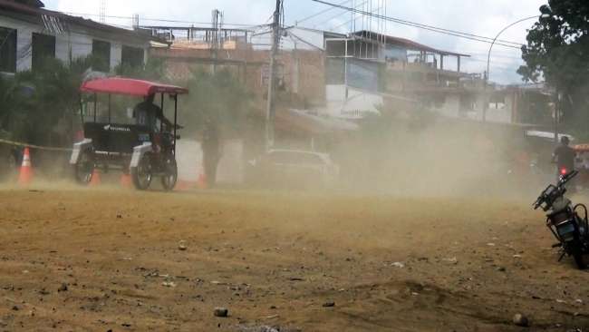 Los conductores de vehículos pasan a excesiva velocidad por el tramo habilitado que no está asfaltado sin tener en cuenta que la polvareda viene afectando a todo el vecindario tal como se puede observar también mediante las redes sociales. Una moradora de la zona identificada como Rosy Alarcón manifestó que un funcionario municipal les prometió que el próximo lunes estará desmontando todo el estrado.