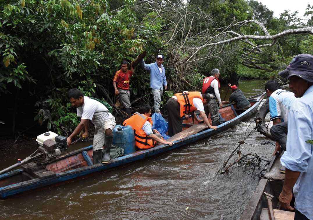 La comitiva regional, dirigida por los pescadores de la zona, llegó hasta la comunidad nativa de Santa Sofía, ubicada en la frontera con el departamento de Loreto; el recorrido se hizo por las lagunas Papa Cocha, Atún Cocha, Suni Cocha, que están unidas por quebradas, como la de Andrés Caño, Atún Quebrada, Sacarita, Yanayacu, Matador y Yurac.