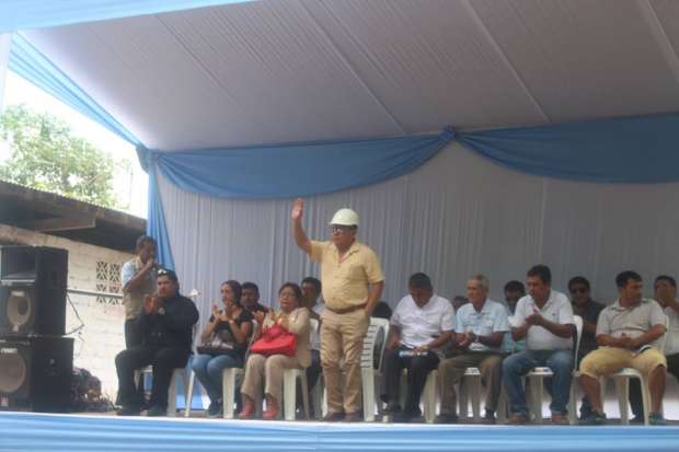 El alcalde de Morales, Carlos Philco Balvín, colocó la primera piedra para la construcción del puente El Bado, que unirá la sexta cuadra del jirón Manco Cápac, con la Vía de Evitamiento I en el sector Oasis.