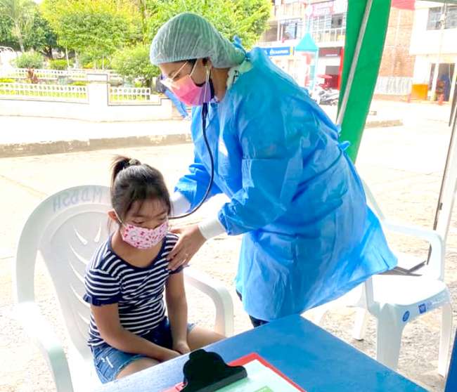 Niños menores de tres años de edad recibieron atención médica gratuita en la plaza central del distrito La Banda de Shilcayo, cuya acción solidaria fue realizado por el centro de estimulación temprana “Renacer” con el apoyo de profesionales de otras instituciones de la región San Martín.