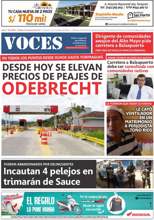 PrevAnteriorIncrementan costo de peaje en carretera IIRSA Norte