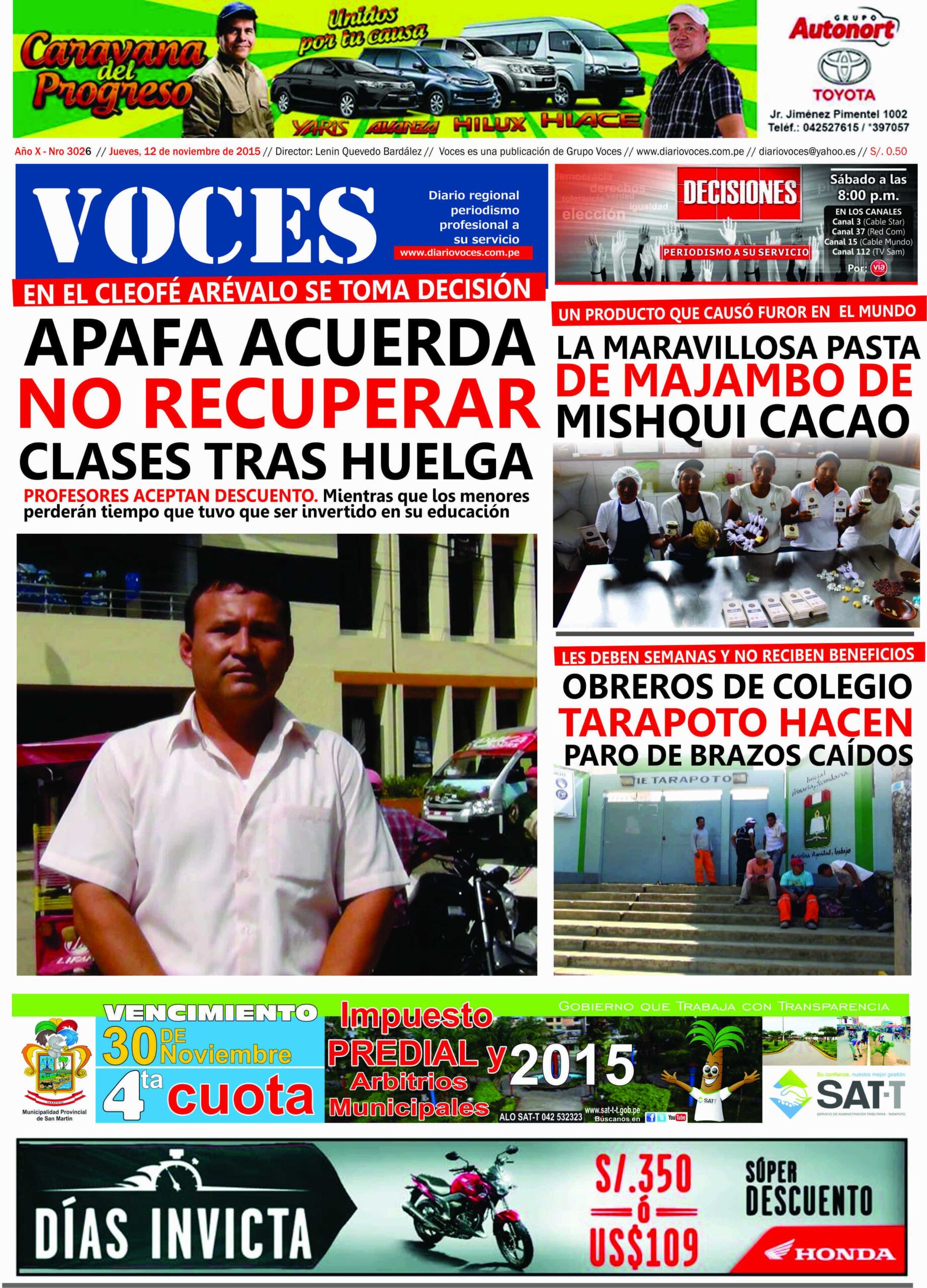 Portada del 12 de noviembre de 2015