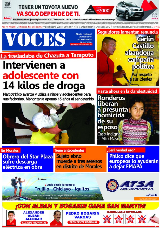 Portada del día 04 de Junio del 2014
