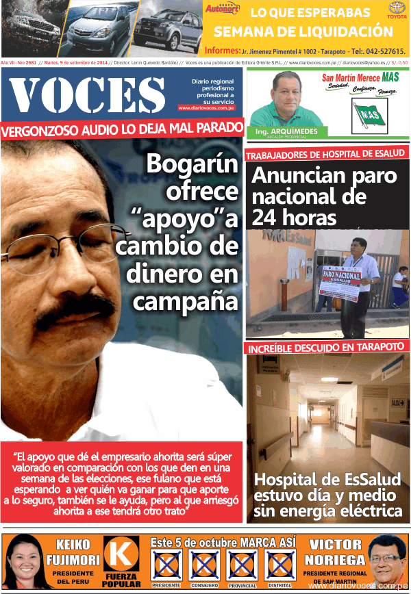 Portada del día 09 de Septiembre del 2014