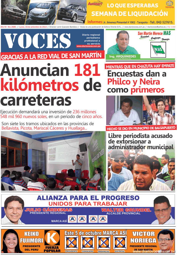 Portada del día 15 de Septiembre del 2014