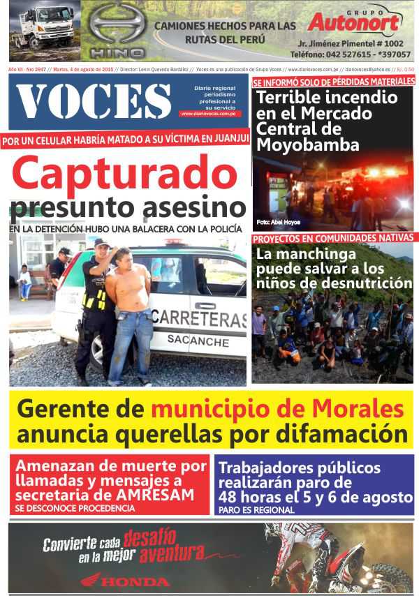 Portada del día 04 de Agosto del 2015