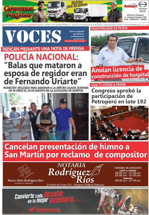 Portada del día 04 de Septiembre del 2015
