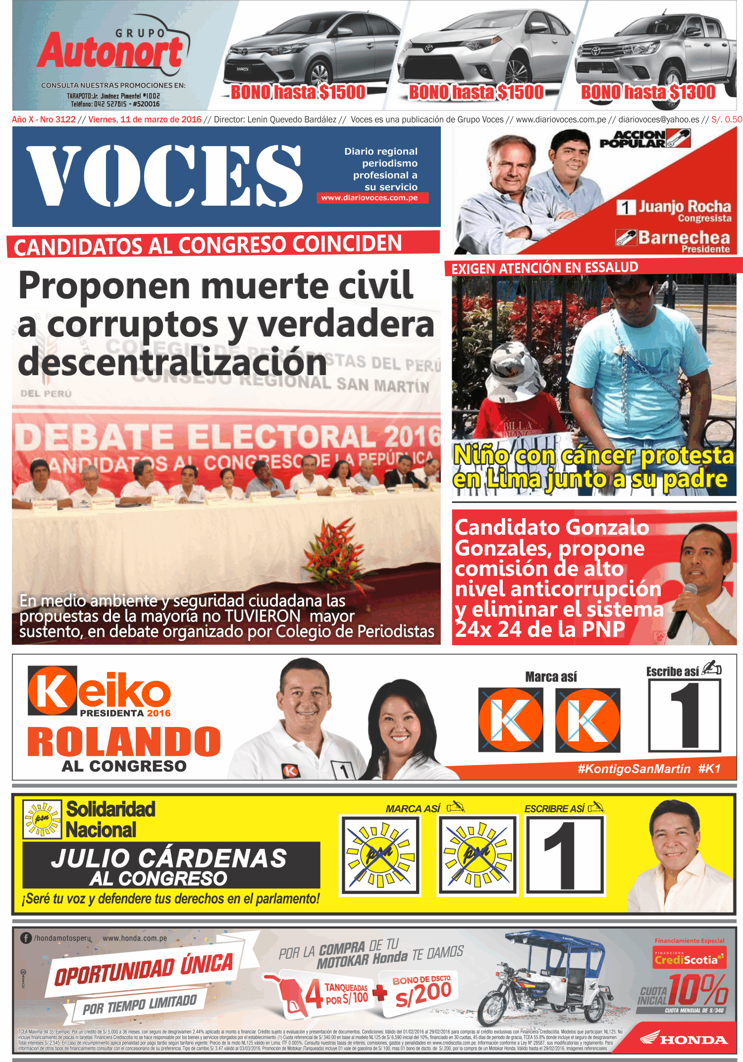 Portada del día 11 de Marzo del 2016