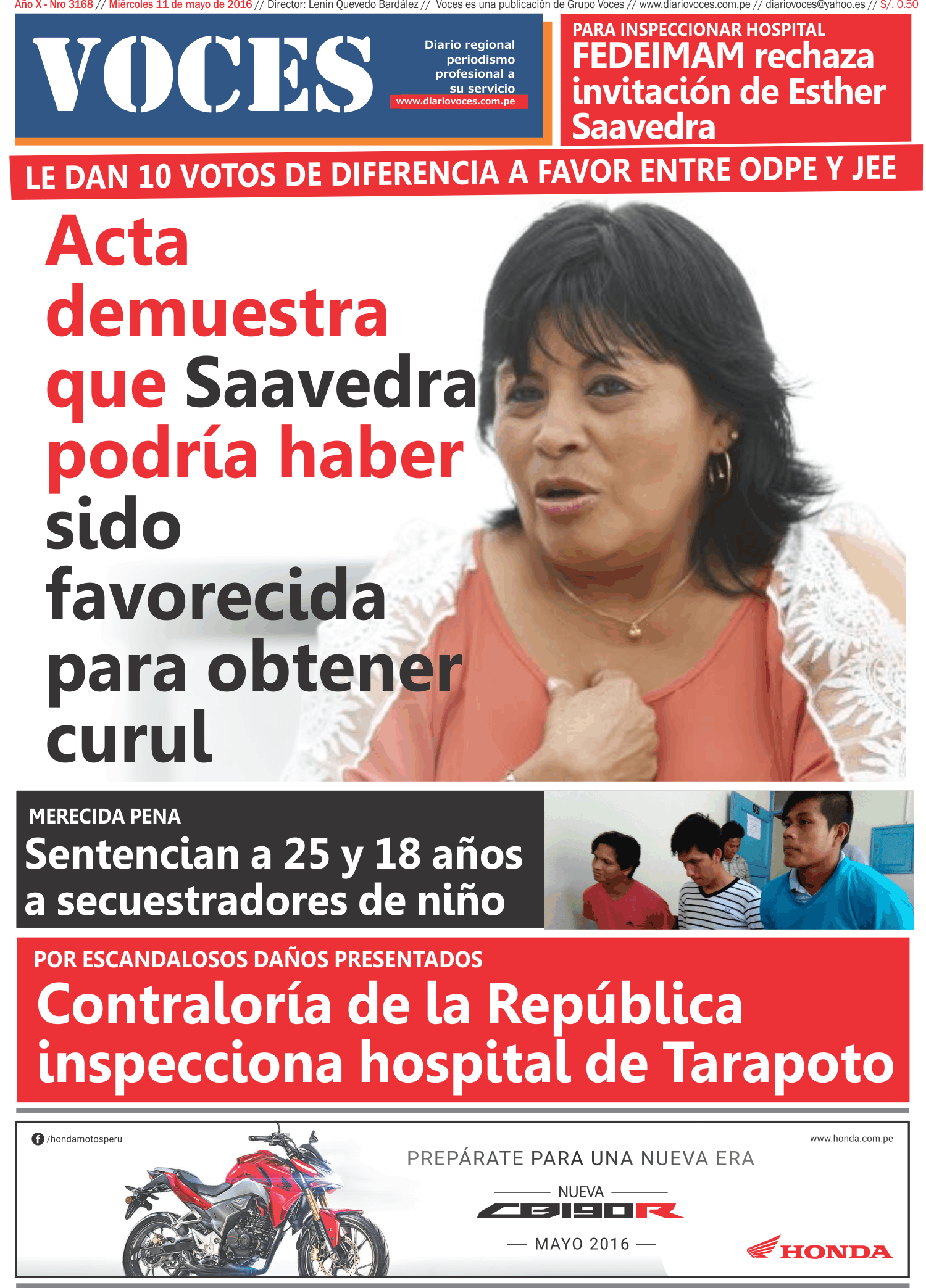 Portada del día 11 de Mayo del 2016