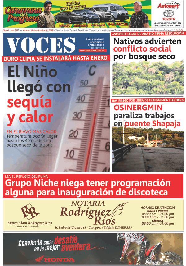 Portada del día 11 de Septiembre del 2015