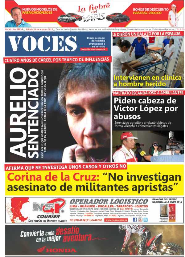 Portada del día 16 de Mayo del 2015