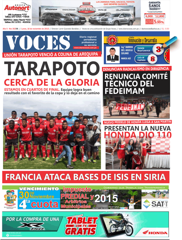 ☁️ 28.5 °CTarapotodomingo, noviembre 16, 2025