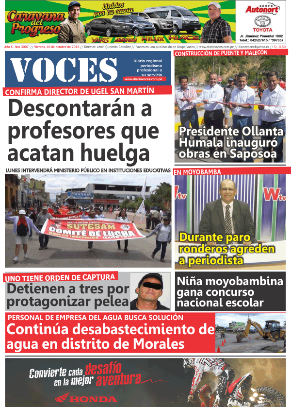 Portada del día 16 de Octubre del 2015