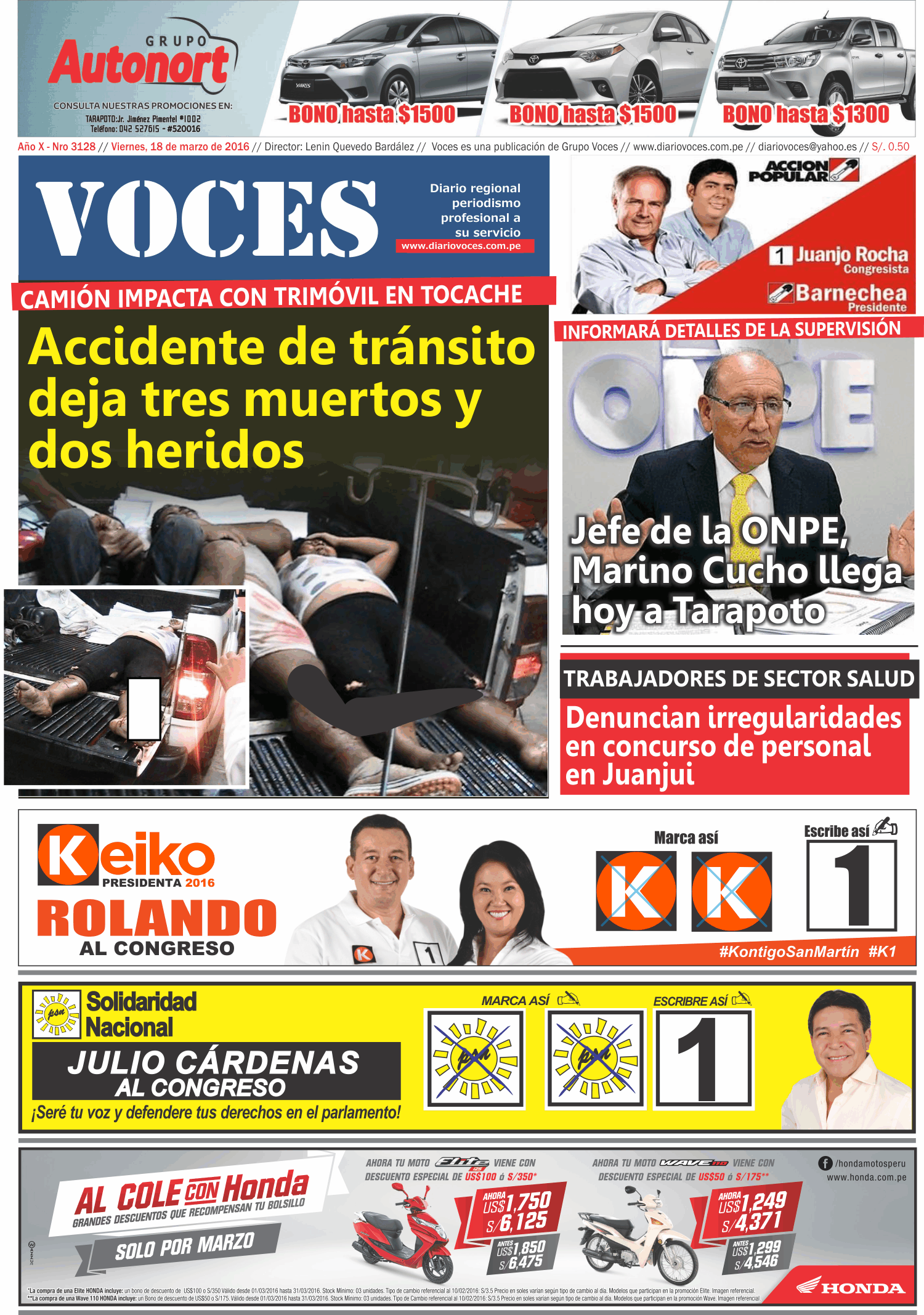 Portada del día 18 de Marzo del 2016