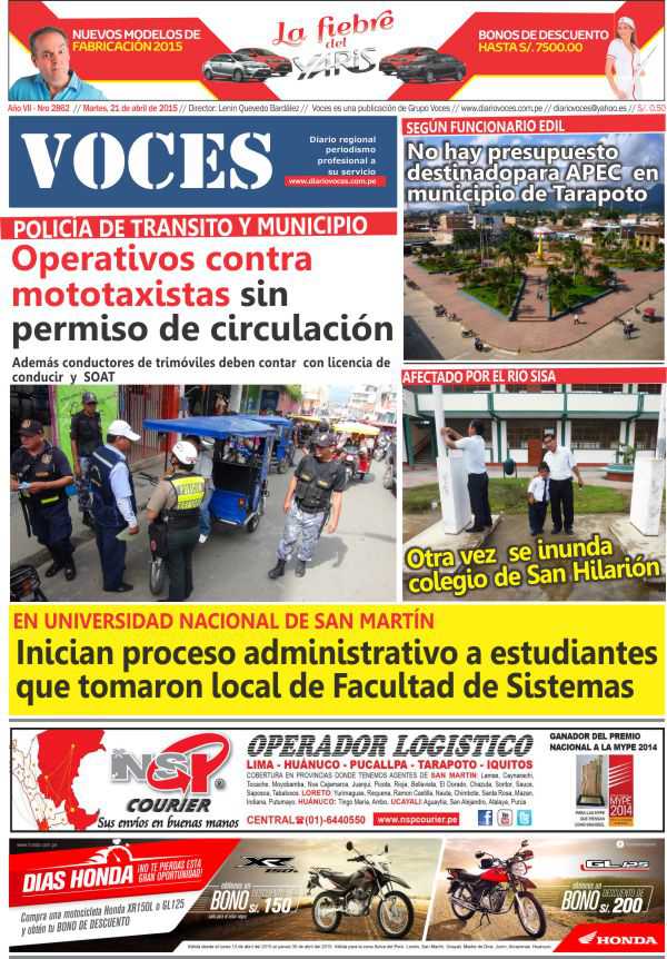 InicioPortada del día Portada del día Portada del día 21 de Abril del 2015 By Voces 21/04/2015 293 FacebookTwitterWhatsAppLinkedinTelegram Cuota FacebookTwitterWhatsAppLinkedinTelegram Artículo anteriorCaricatura del 20.04.2015Artículo siguienteNunca existió presupuesto destinado a la Municipalidad para la APEC Artículos relacionados Actualidad SITAPASAM CONTINÚA SU LUCHA POR LOGRAR UNA NUEVA ESCALA REMUNERATIVA Actualidad Huachitas, sábado 11 de octubre 2025 Actualidad Cambios en el Gobierno Regional tras polémicas en ferias “Mucho Gusto” y Expoamazónica Mantente conectado34,742FansMe gusta478SeguidoresSeguir1,851SeguidoresSeguir ÚLTIMOS ARTÍCULOS Actualidad SITAPASAM CONTINÚA SU LUCHA POR LOGRAR UNA NUEVA ESCALA REMUNERATIVA Actualidad Huachitas, sábado 11 de octubre 2025 Actualidad Cambios en el Gobierno Regional tras polémicas en ferias “Mucho Gusto” y Expoamazónica Actualidad Diresa protege a más de 1400 pobladores de Huallaga mediante jornada de fumigación Cargar más