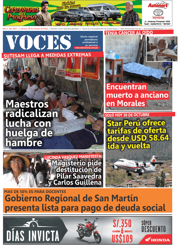 Portada del día 30 de Octubre del 2015
