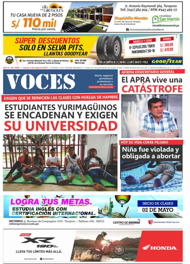 Portada del día Jueves 04 de Mayo del 2017