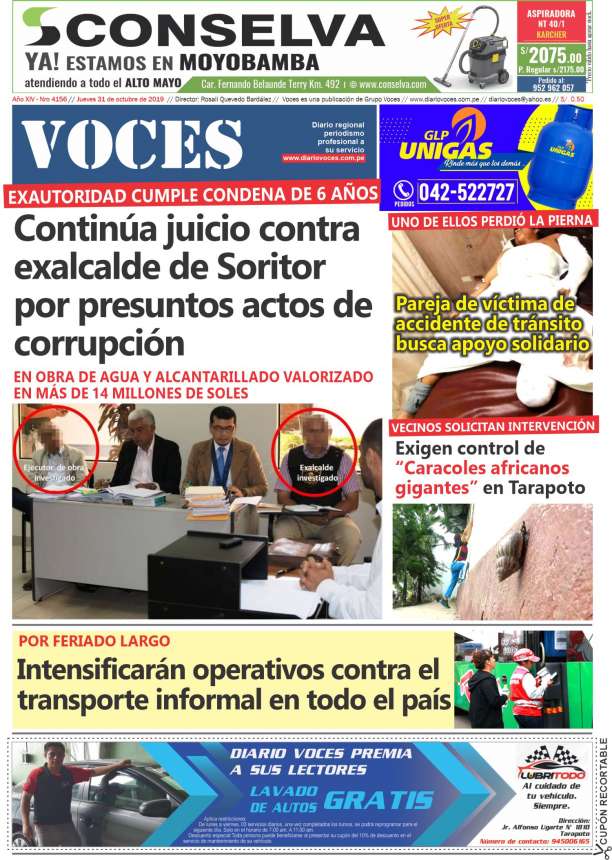 Portada del día Jueves 31 de Octubre de 2019