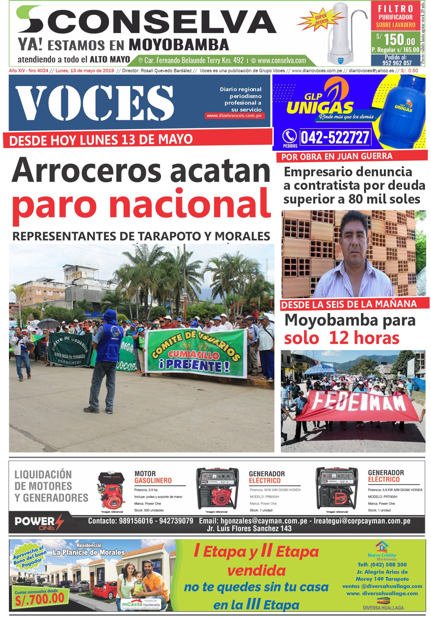 Portada del día Lunes 13 de Mayo de 2019