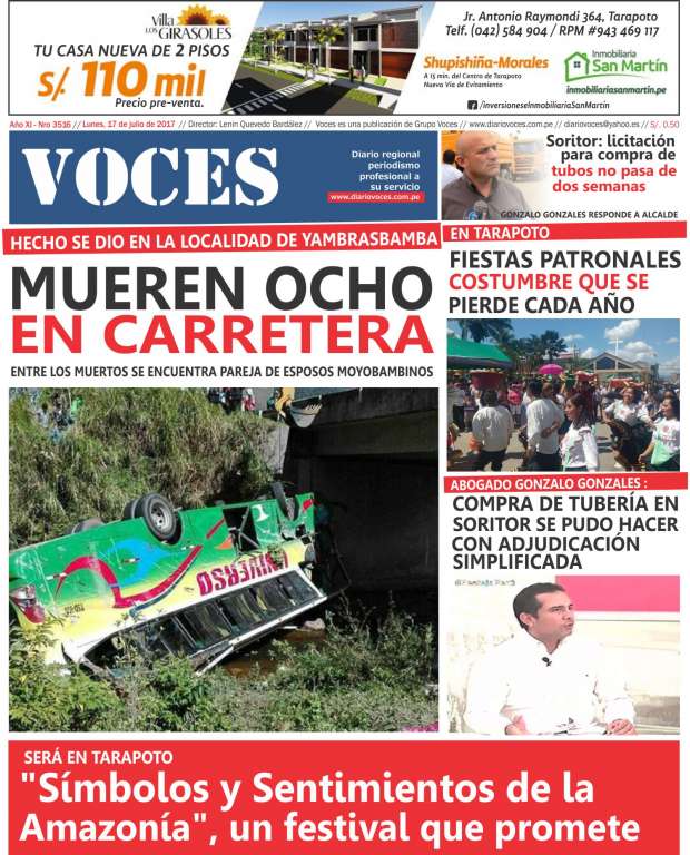 Choque entre furgoneta y trimóvil deja tres heridos en Tarapoto