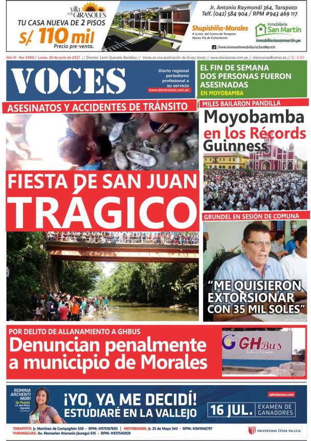 Portada del día Lunes 26 de Junio del 2017